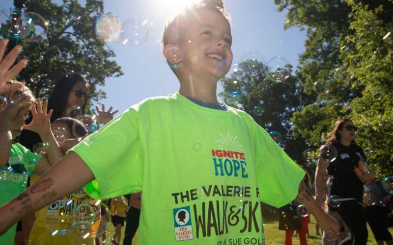RJ loves visiting The Valerie Fund Children’s Center, especially fun visits from Kristin, our child life therapist. She always brings him Play-Doh, footballs, and his favorite toys to make visits fun. The Valerie Fund has become a family. They have allowed us to participate in fun events to make these challenging times a little better. RJ is still in treatment, but is looking forward to starting preschool and going to Disney World.
