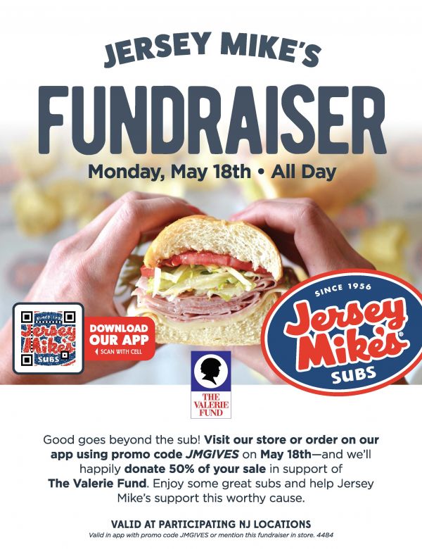 The Valerie Fund is joining forces with over 130 Jersey Mike’s Subs across New Jersey for the 14th Annual March Month of Giving campaign to support local charities. During the month of March, customers can make a donation to The Valerie Fund at participating Jersey Mike’s restaurants.